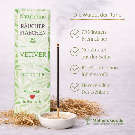 Naturreine Vetiver-Räucherstäbchen - hergestellt in Deutschland