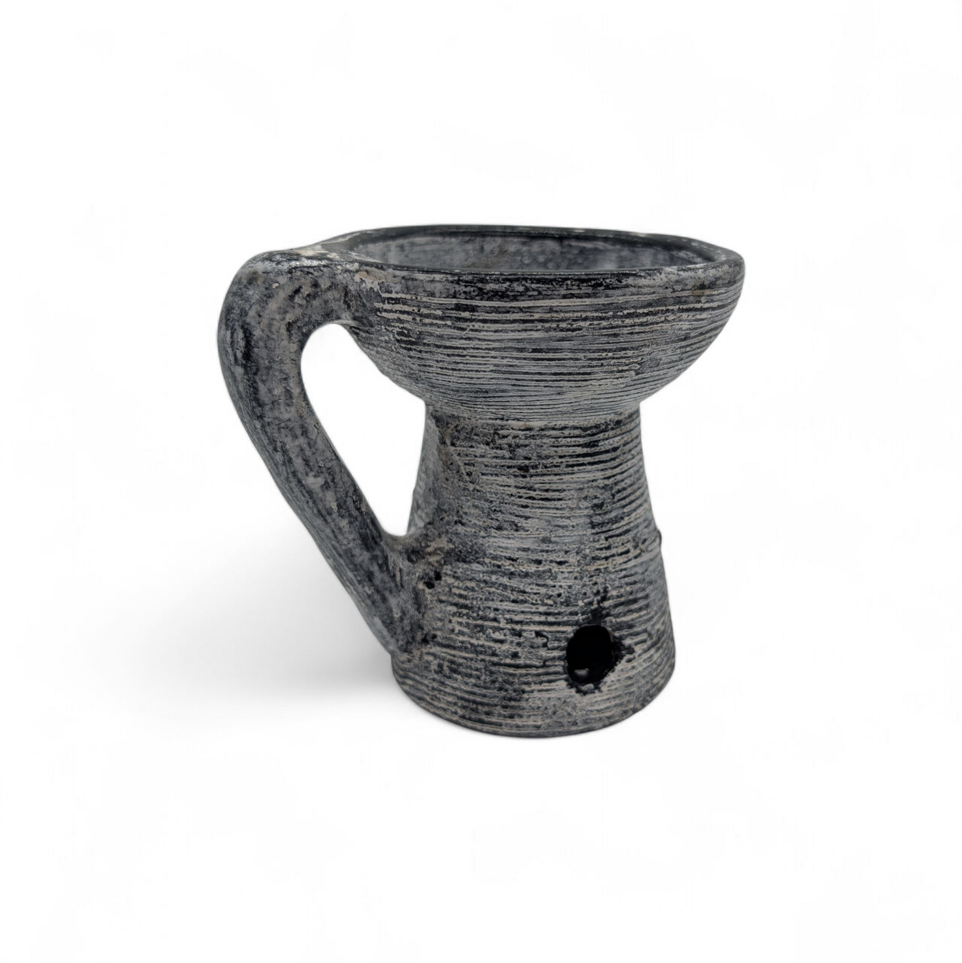 Dieser schöne Räucherbrenner stammt aus Indonesien und hat, wie das Schiffchen für die Räucherstäbchen, einen "gebrauchten" bzw. verwaschenen Look. Die Größe beträgt circa 11 cm, ebenso der Durchmesser. Das Räuchergefäß hat innen mehrere Löcher, damit die Kohle gut mit Sauerstoff versorgt wird und funktioniert ohne Sand.