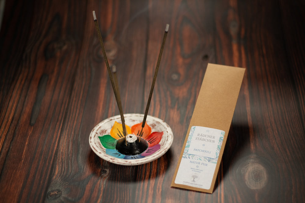 Räucherstäbchen, Kerzen, Räuchergefäße und Räucherkohle niemals unbeaufsichtigt lassen, da Brandgefahr!