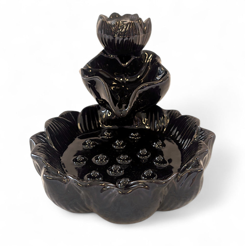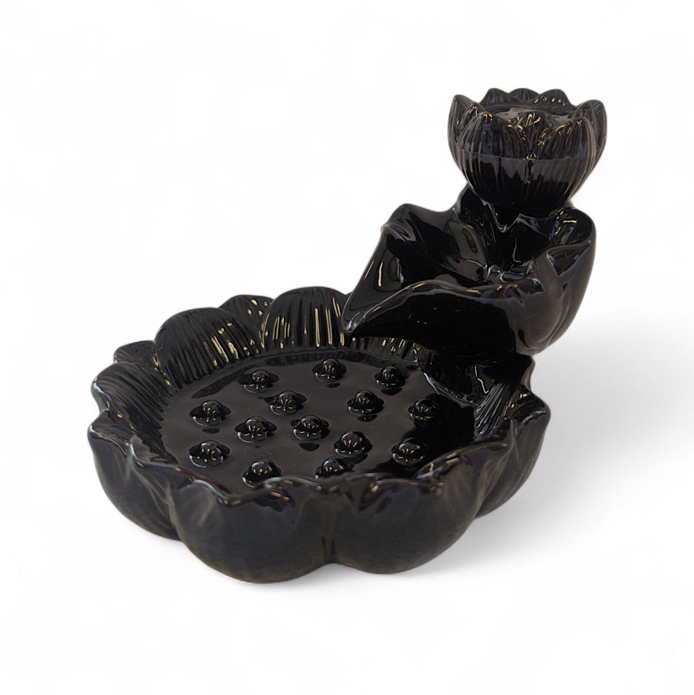 Der Kegelhalter besteht aus dunklem Keramik und lässt den Rauch der Kegel, wie ein Wasserfall nach unten fließen.