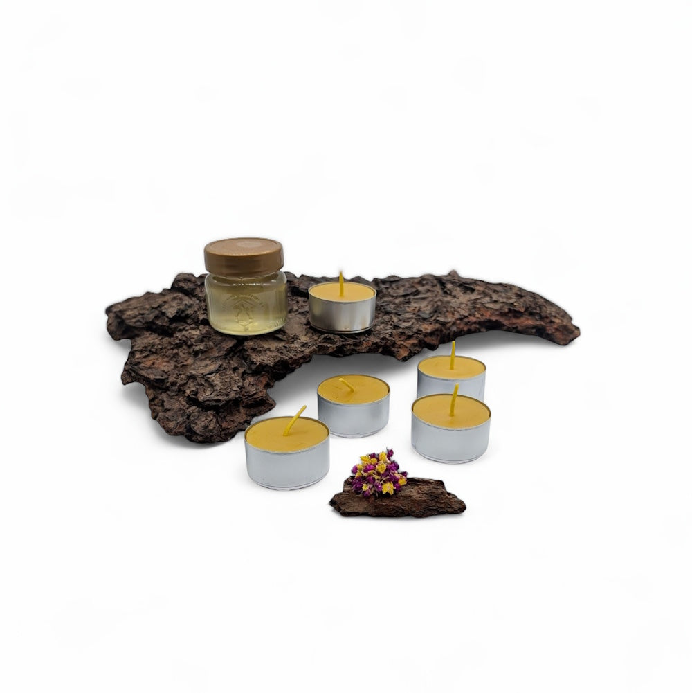 Diese Teelichter stammen von einem Imker, der die Bienenwachs-Teelichter in Handarbeit gießt. Es handelt sich um 100% echtes Bienenwachs ohne irgendwelche Zusätze. Das sieht man an der goldgelben Farbe und riecht man durch den intensiven Duft nach Honig.